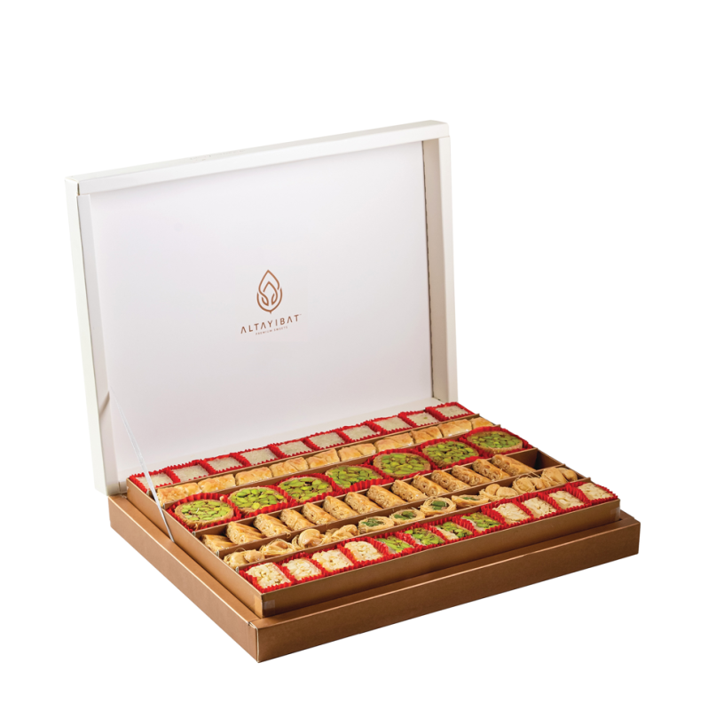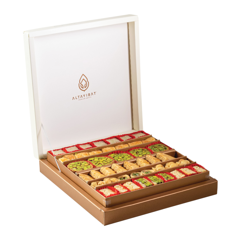 تنبيه الحساسية: يحتوي على كاجو، فستق حلبي، جلوتين القمح ومشتقات الحليب.