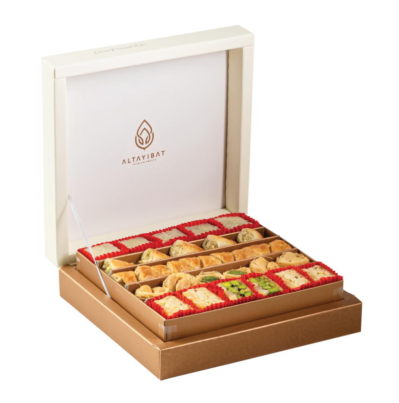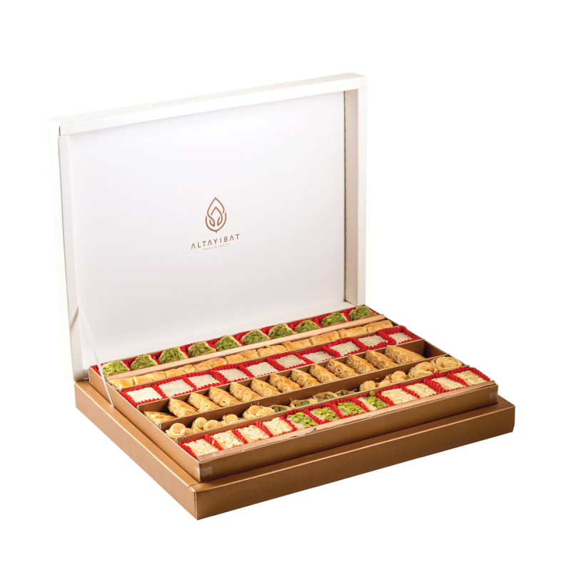 تنبيه الحساسية: يحتوي على كاجو، فستق حلبي، جلوتين القمح ومشتقات الحليب.